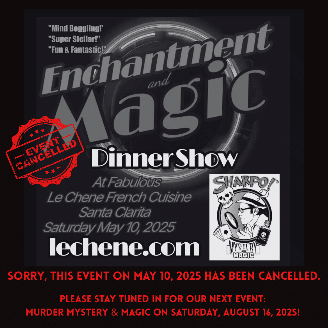 Unfortunately, due to unforeseen circumstances, this scheduled event has been cancelled. If you are still interested in attending one of our Sharpo events, our next Mystery and Magic is scheduled for Saturday August 16th. Please click this link for more details.
